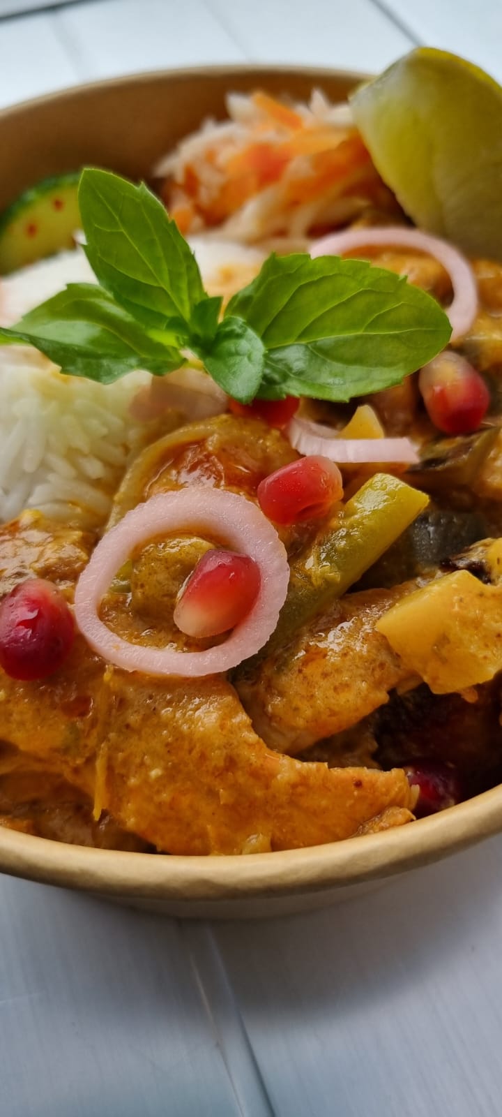 A popular mild coconut curry dish in Indonesia and South East Asia, chicken curry marinated in spices, Served with jasmine rice.